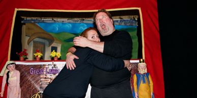 Jennifer Walker & Vincent Polowy, of Great Lakes National Puppet Theater, being silly after a performance of "Rumpelstiltskin".